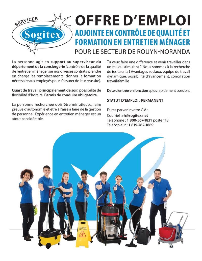 POSTES D' ADJOINTE EN CONTRÔLE DE QUALITÉ ET FORMATION EN ENTRETIEN MÉNAGER POUR LE SECTEUR DEROUYN-NORANDA